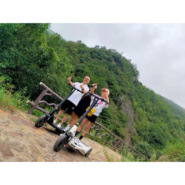 The way of operating : firstly press the start button and the instrument panel will light up, and then brush the instrument with the induction key to move the cycling mode. When Airuide stroller is cycling , the right hand slowly turns the throttle knob then the car will slowly move forward. The turning angle of the throttle handle is increasing to makes the cart move fast and is decreasing to makes the small cart moves slowly. The speed of the car is related to the angle of the throttle handle is changed . Cycling mode is suitable for commuting.